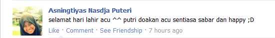 Dan seterusnya di bawah ni wajah2 yang wish bday aku dari pagi semalam sampai lah petang tadi... Aku amek yang mane ucapan dye wat aku tersenyum dan rasa di hargai jek lah eh hehe ..layan !~